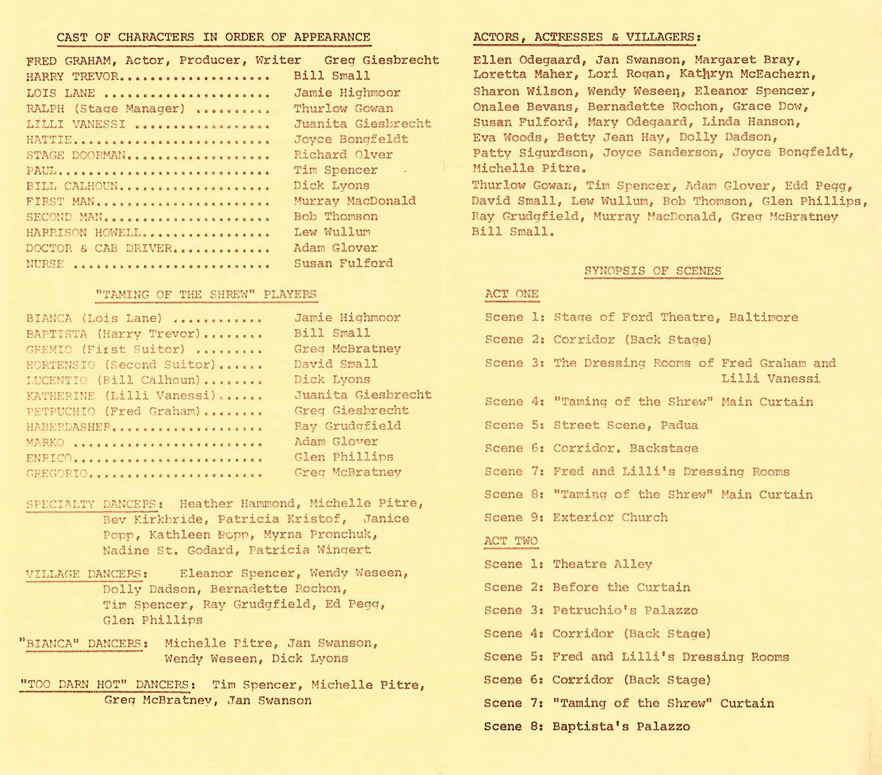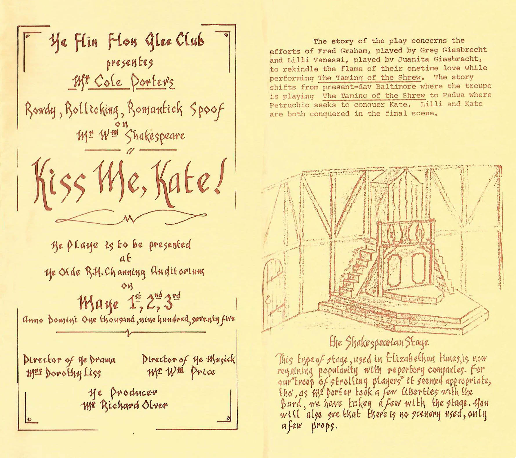 1975 Kiss Me Kate Program Page Two