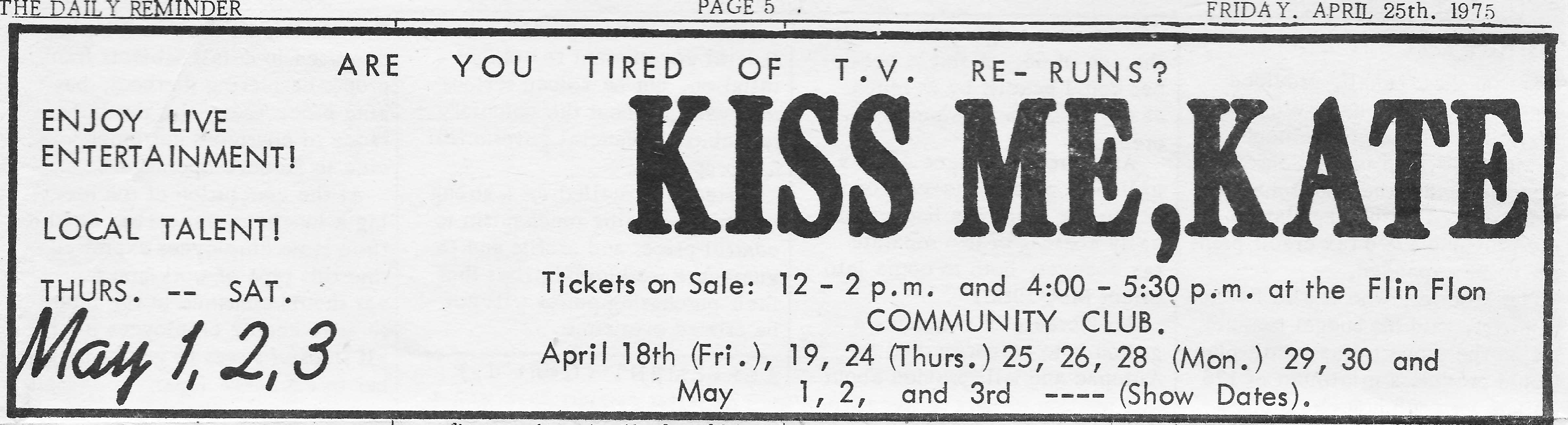 1975 Kiss Me Kate Daily Reminder Article